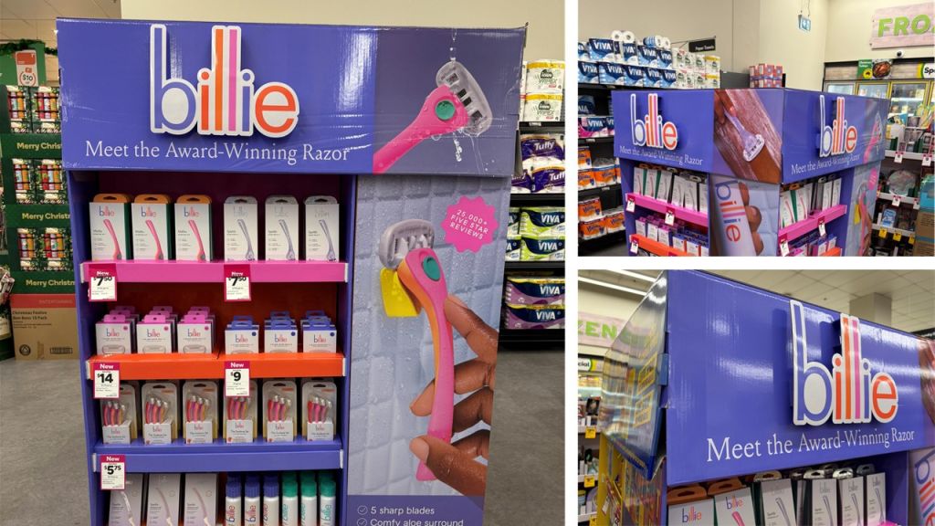 Edgewell Personal Care partnered with id8 Studio to create a free-standing pallet display for Billie, the award-winning shave and body brand ‘Built for Womankind’, alongside iconic Suncare leaders Banana Boat and Hawaiian Tropic.